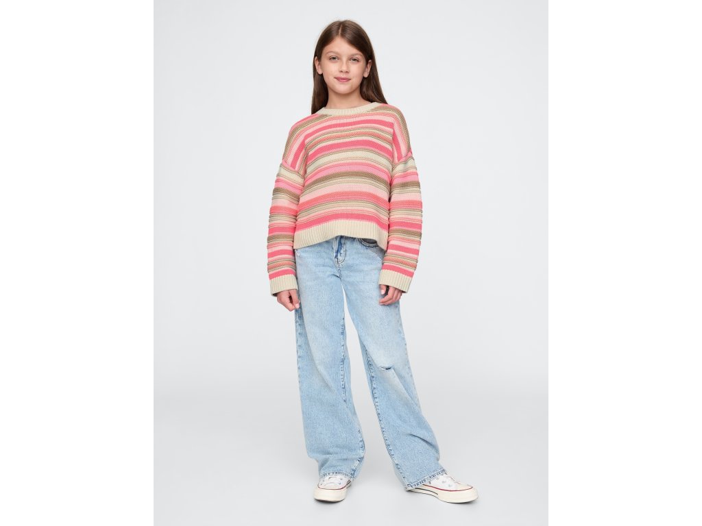 Detský sveter z mäkkého bavlneného úpletu je pohodlný a štýlový kúsok, ideálny na každodenné nosenie. Má okrúhly výstrih, dlhé rukávy s voľne strihanými ramenami a rebrovaný lem, ktorý pomáha udržiavať tvar. Tento produkt bol vyrobený vo výrobnom závode podporujúcom rodovú rovnosť a posilňovanie postavenia žien prostredníctvom programov RISE a P.A.C.E. od Gap Inc., ktoré podporujú rozvoj zručností a sebavedomie pracovníkov. Sveter má rovný, pohodlný strih a dĺžku siahajúcu k bokom, vďaka čomu je univerzálnou voľbou pre kombináciu s džínsami, legínami alebo sukňami. Skvelá voľba pre školu, ihrisko alebo rodinné výlety, ktorá spája štýl a pohodlie.Dodatočné parametre