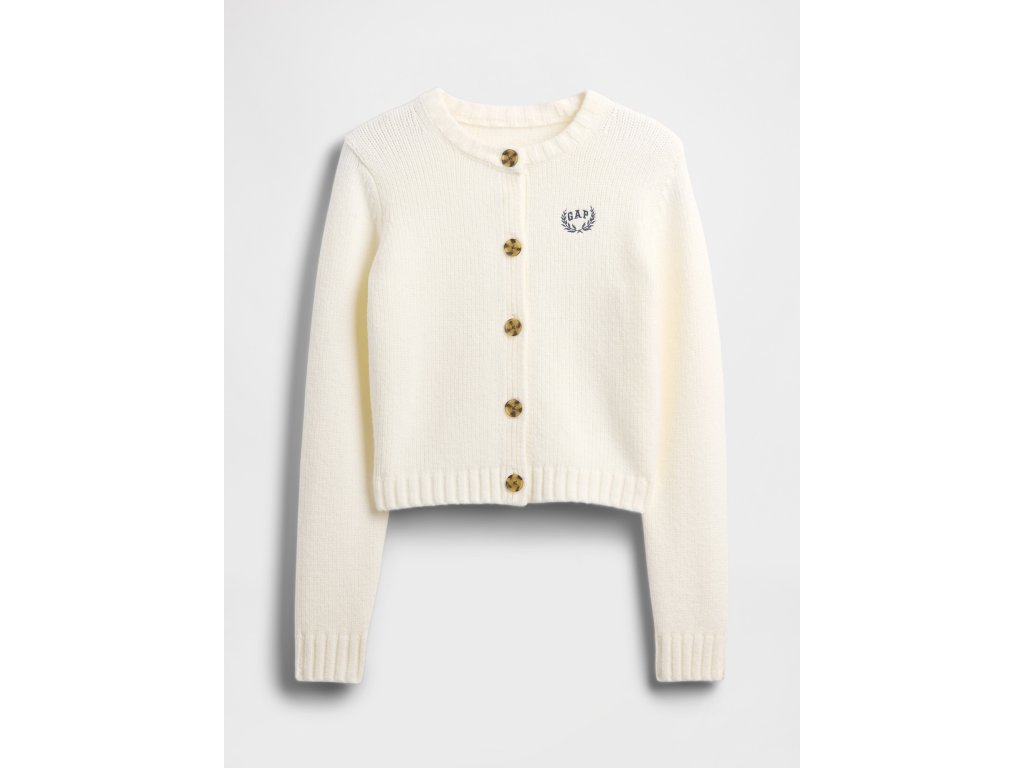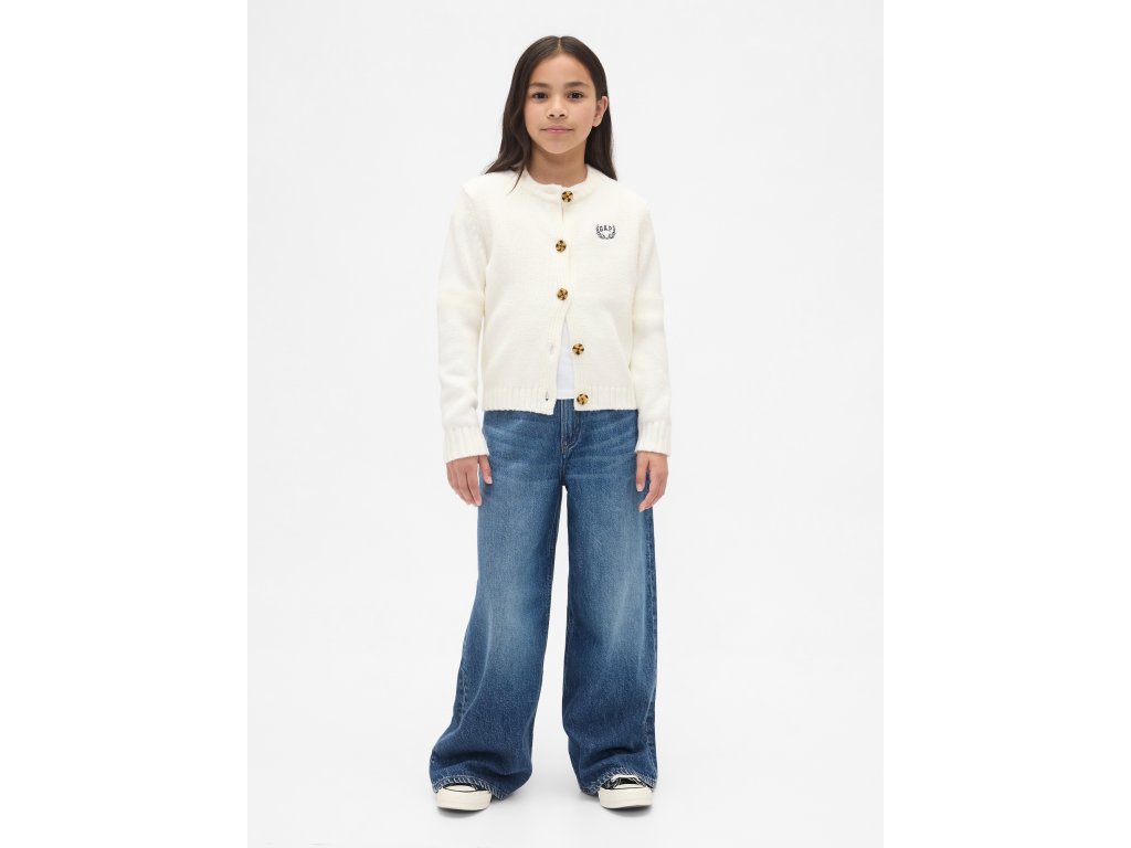 Dievčenský kardigan z hebkej zmesi s kašmírovým efektom je ideálnou voľbou na každodenné nosenie i slávnostné príležitosti. Vyrobený z mimoriadne jemnej zmesi CashSoft, ktorá ponúka vzhľad a pocit kašmíru bez náročnej starostlivosti. Stredne ťažká priadza je načesaná špeciálnou technikou, vďaka ktorej je sveter ešte mäkší a príjemnejší na dotyk. Okrúhly výstrih, zapínanie na drobné gombíky a dlhé rukávy tvoria nadčasový základ šatníka. Elegantná výšivka GAP na hrudi dodáva decentný detail. Rovný relaxed strih pohodlne sedí a siaha približne ku bedrám. Pre užší strih odporúčame zvoliť o jednu veľkosť menšiu.Dodatočné parametre