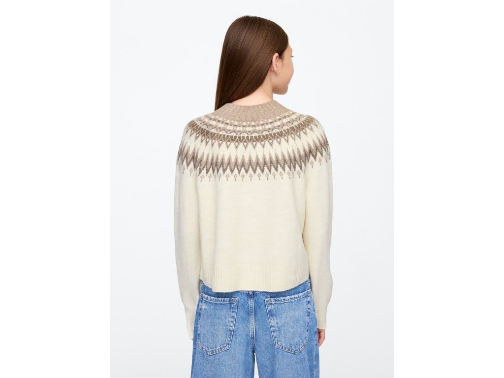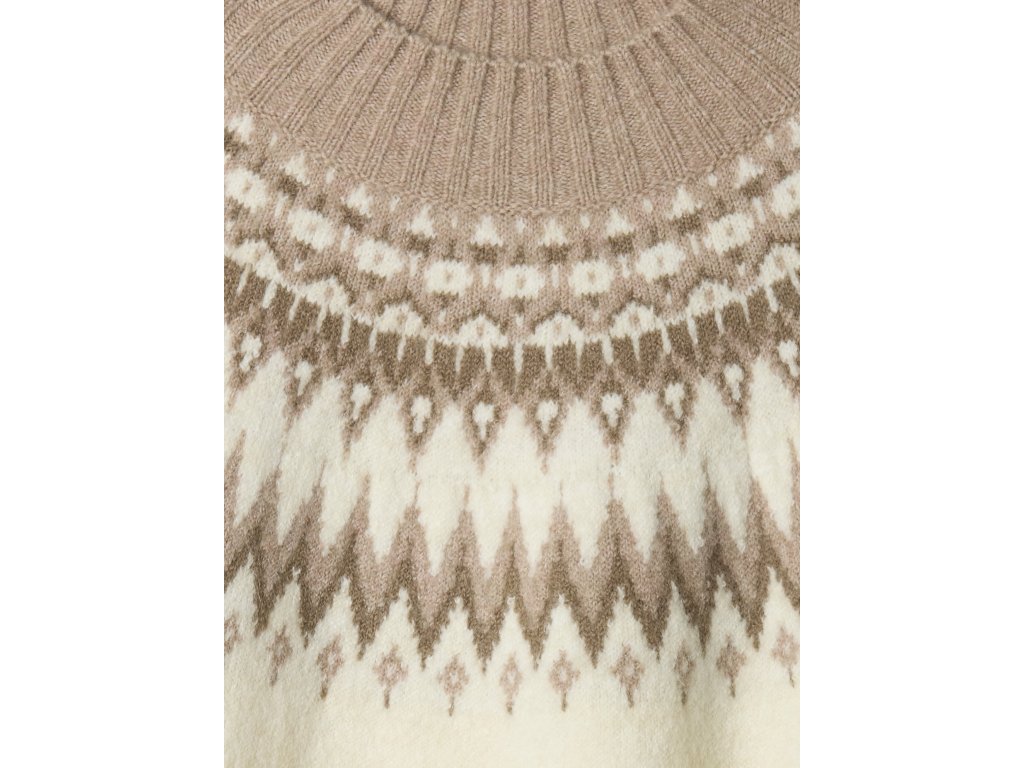 Mäkký, hrejivý zimný sveter. Elegantný stojačik dodáva štýlový nádych a chráni pred chladným vetrom. Dlhé rukávy a celoplošný vzor Fair Isle prinášajú zimné kúzlo a príjemné teplo. Fair Isle vzor je tradičný pletený motív pochádzajúci z rovnomenného škótskeho ostrova Rovný, voľný strih zaisťuje pohodlie a voľnosť pohybu. Sveter siaha k bokom, čo sa krásne hodí k džínsom alebo legínam. Pre klasickejší, viac priliehavý vzhľad odporúčame zvoliť o jednu veľkosť menšiu.Dodatočné parametre
