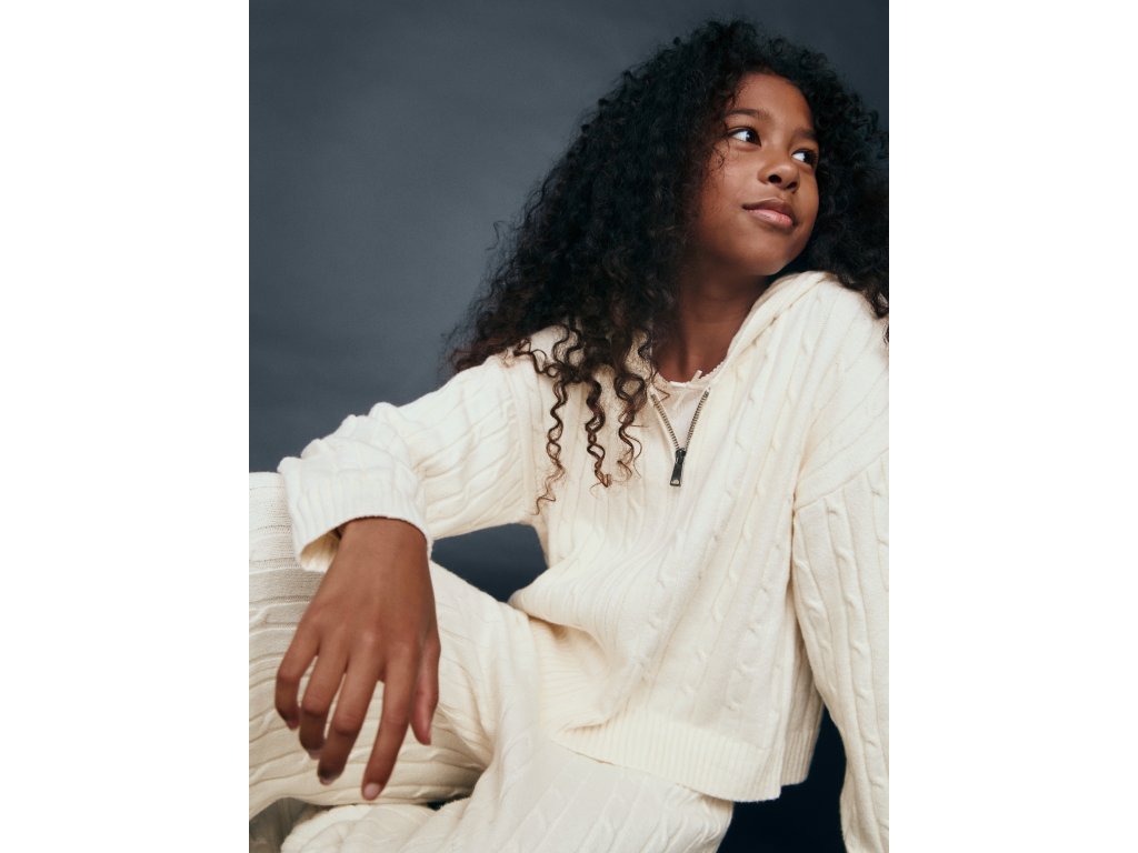 Extra jemná mikina s kapucňou z bavlnenej zmesi s pleteným vzorom. Kapucňa a zapínanie na zips vpredu pre pohodlie a štýl. Dlhé rukávy zaisťujú teplo v chladných dňoch. Najobľúbenejší materiál, ktorý je hebký ako kašmír. Vyrobená zo stredne ťažkého mäkkého úpletu s jemne česanou úpravou. Každodenný luxus bez nutnosti chemického čistenia. Pohodlný, rovný strih na uvoľnený vzhľad. Pre klasický strih odporúčame zvoliť o číslo menšiu veľkosť. Siaha do oblasti bokovDodatočné parametre
