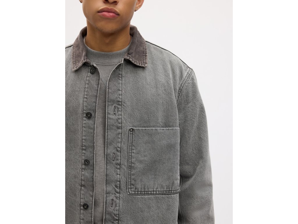 Pánska džínsová bunda. Našité veľké vrecká a golier. Dlhé rukávy s manžetou. Zapínanie na gombíky. Rovný strih.Dodatočné parametre