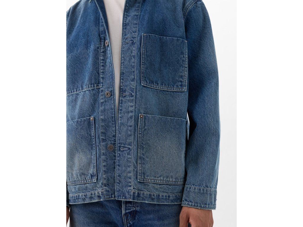 Pánska džínsová bunda. Zapínanie na kovové gombíky. Predné našité vrecká. Dlhé rukávy s manžetou. Golier a rovný strih.Dodatočné parametre