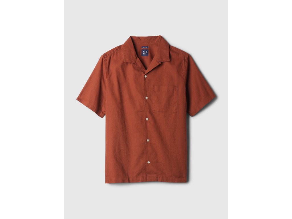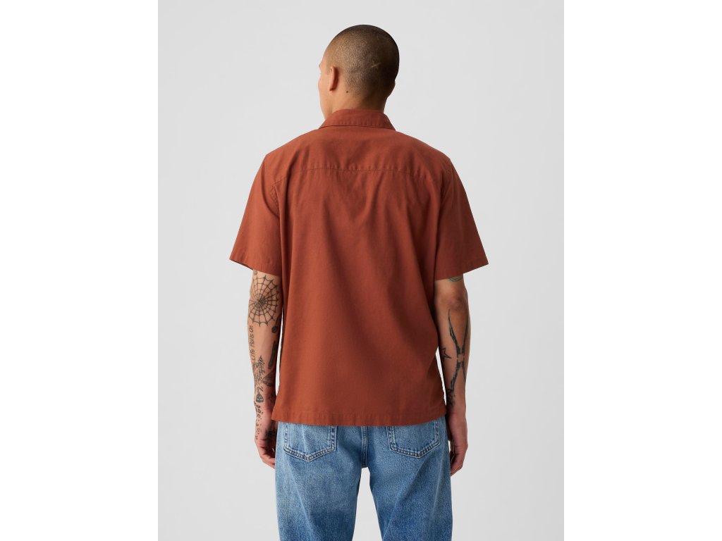 Pánska ľanová košeľa. Golier a zapínanie na gombíky. Krátke rukávy a rovný strih. Zmes ľanu a bavlny.Dodatočné parametre
