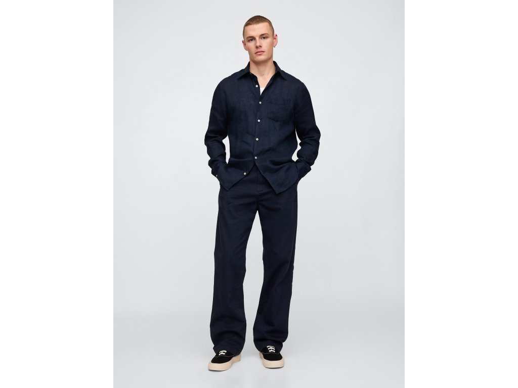 Pánska košeľa z mäkkého 100% ľanu spája štýl a pohodlie, čo z nej robí ideálnu voľbu pre ležérne aj formálnejšie príležitosti. Priedušný materiál zaisťuje ľahkosť a sviežosť, vďaka čomu je košeľa perfektná do teplejších dní. Má klasický špicatý golier, zapínanie na gombíky a dlhé rukávy s manžetami na gombíky, ktoré pridávajú elegantný vzhľad. Na prednej strane nechýba praktické náprsné vrecko. Tento model je súčasťou programov RISE a P.A.C.E., ktoré podporujú rodovú rovnosť a posilňovanie postavenia žien, prispievajúc tak k zodpovednému a udržateľnému výrobnému procesu. Klasický strih poskytuje rovný a uvoľnený fit, ktorý siaha k bokom, vďaka čomu je košeľa univerzálnym kúskom do každého šatníka. Ľahko ju skombinujete s chinos nohavicami alebo džínsami pre nenútený a elegantný vzhľad. Modelové meria 185–188 cm, majú obvod pása 79 cm a dĺžku vnútorného švu 81–84 cm. Na sebe majú veľkosť Gap M.Dodatočné parametre