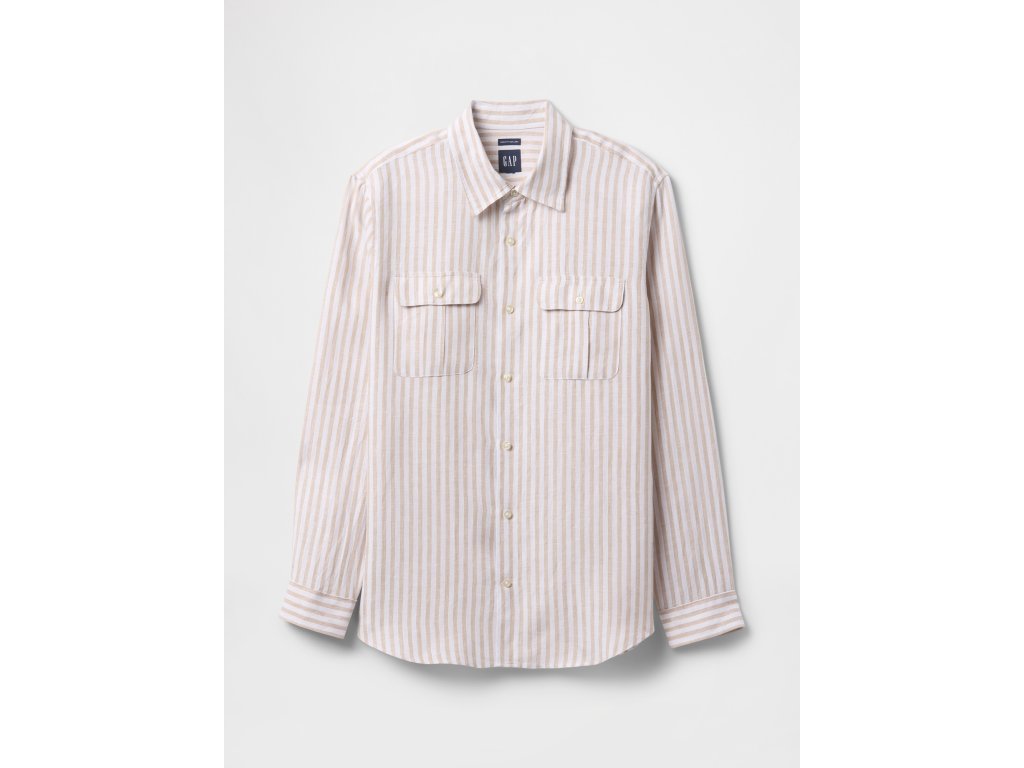 Pánska košeľa z mäkkého 100% ľanu spája štýl a pohodlie, čo z nej robí ideálnu voľbu pre ležérne aj formálnejšie príležitosti. Priedušný materiál zaisťuje ľahkosť a sviežosť, vďaka čomu je košeľa perfektná do teplejších dní. Má klasický špicatý golier, zapínanie na gombíky a dlhé rukávy s manžetami na gombíky, ktoré pridávajú elegantný vzhľad. Na prednej strane nechýba praktické náprsné vrecko. Tento model je súčasťou programov RISE a P.A.C.E., ktoré podporujú rodovú rovnosť a posilňovanie postavenia žien, prispievajúc tak k zodpovednému a udržateľnému výrobnému procesu. Klasický strih poskytuje rovný a uvoľnený fit, ktorý siaha k bokom, vďaka čomu je košeľa univerzálnym kúskom do každého šatníka. Ľahko ju skombinujete s chinos nohavicami alebo džínsami pre nenútený a elegantný vzhľad. Modelové meria 185–188 cm, majú obvod pása 79 cm a dĺžku vnútorného švu 81–84 cm. Na sebe majú veľkosť Gap M.Dodatočné parametre