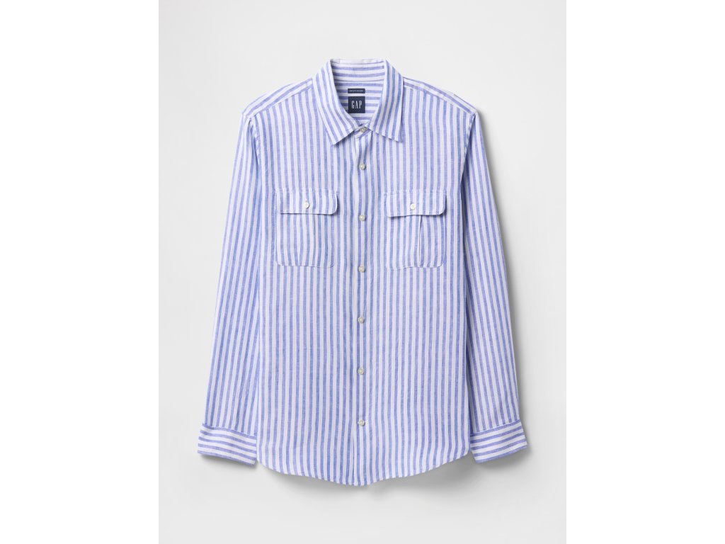 Pánska košeľa z mäkkého 100% ľanu spája štýl a pohodlie, čo z nej robí ideálnu voľbu pre ležérne aj formálnejšie príležitosti. Priedušný materiál zaisťuje ľahkosť a sviežosť, vďaka čomu je košeľa perfektná do teplejších dní. Má klasický špicatý golier, zapínanie na gombíky a dlhé rukávy s manžetami na gombíky, ktoré pridávajú elegantný vzhľad. Na prednej strane nechýba praktické náprsné vrecko. Tento model je súčasťou programov RISE a P.A.C.E., ktoré podporujú rodovú rovnosť a posilňovanie postavenia žien, prispievajúc tak k zodpovednému a udržateľnému výrobnému procesu. Klasický strih poskytuje rovný a uvoľnený fit, ktorý siaha k bokom, vďaka čomu je košeľa univerzálnym kúskom do každého šatníka. Ľahko ju skombinujete s chinos nohavicami alebo džínsami pre nenútený a elegantný vzhľad. Modelové meria 185–188 cm, majú obvod pása 79 cm a dĺžku vnútorného švu 81–84 cm. Na sebe majú veľkosť Gap M.Dodatočné parametre