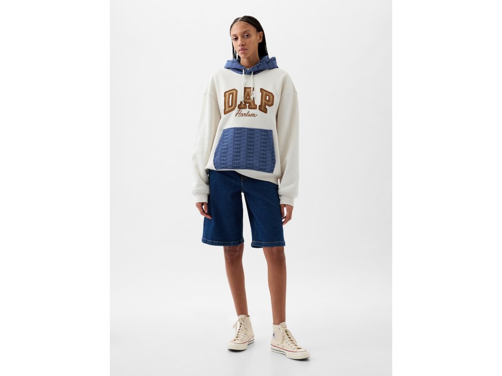 Mikina s kapucňou. Kolekcia Gap × Dapper Dan. Na prednej strane DAP Harlem. Klokanie vrecko. Dlhé rukávy s nápletmi. Mäkká bavlnená teplákovina. Voľnejší rovný strih. Model má na sebe veľkosť M.Dapper Dan (DAP) – módny návrhár, inovátor, majstrovský krajčír z Harlemu. Priekopník prepájania streetweearu a heute couture. Najnovší počin z dielne DAP rafinovane prepája ikonické mikiny a denim Gap odrážajúce harlemskú streetwearovú kultúru v štýle mestského kovboja. Viac z kolekcia Gap × Dapper Dan >.