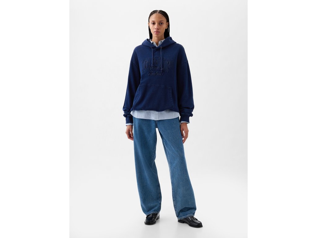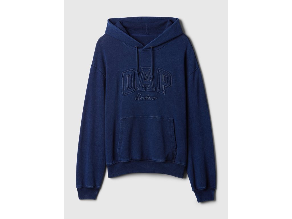 Mikina s džínsovým efektom. Kolekcia Gap × Dapper Dan. Na prednej strane DAP Harlem. Kapucňa a klokanie vrecko. Dlhé rukávy s nápletmi. Mäkká bavlnená teplákovina. Voľnejší rovný strih. Model má na sebe veľkosť M.Dapper Dan (DAP) – módny návrhár, inovátor, majstrovský krajčír z Harlemu. Priekopník prepájania streetweearu a heute couture. Najnovší počin z dielne DAP rafinovane prepája ikonické mikiny a denim Gap odrážajúce harlemskú streetwearovú kultúru v štýle mestského kovboja. Viac z kolekcia Gap × Dapper Dan >.