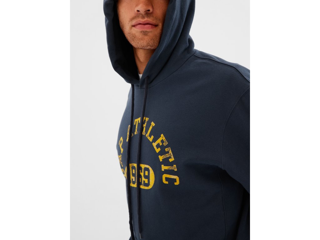 Pánska mikina cez hlavu. S nápisom Gap athletic 1969. Kapucňa so sťahovacou šnúrkou. Priestranné klokanie vrecko. Dlhé rukávy s nápletmi. 81% organická bavlna.Dodatočné parametre