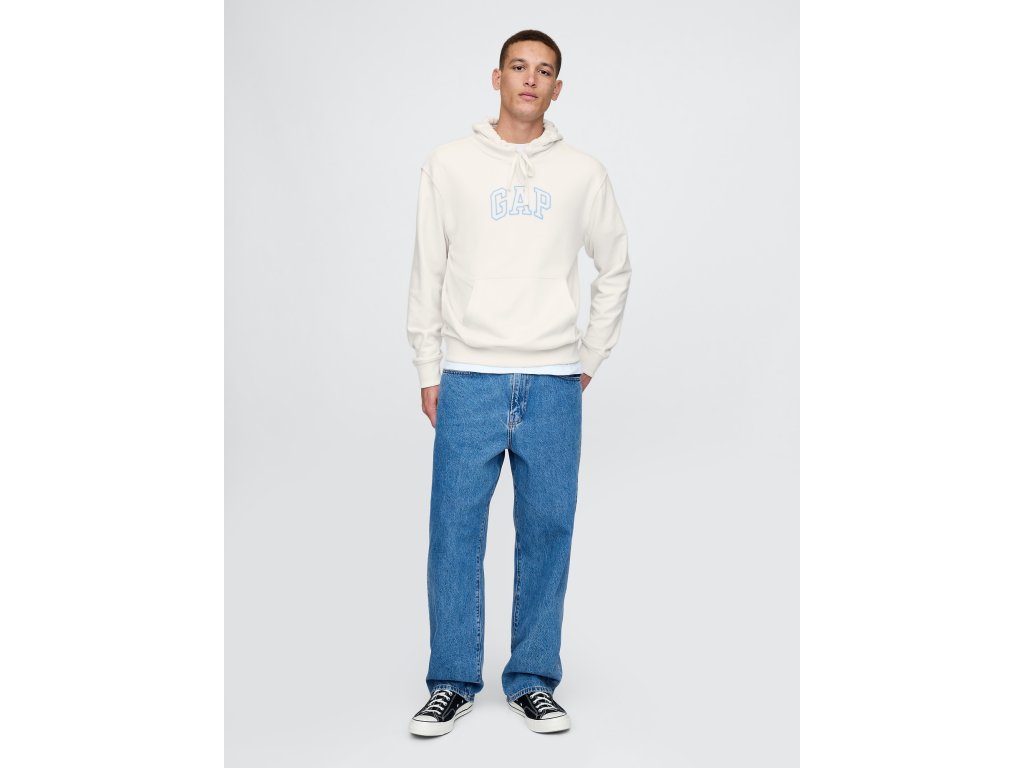 Táto mikina je vyrobená z 23% recyklovaného polyesteru, čo pomáha znižovať spotrebu zdrojov a produkciu odpadu oproti použitiu nových materiálov. Mäkký French terry materiál zaisťuje pohodlie, zatiaľ čo dlhé rukávy s elastickými manžetami a kapucňa so sťahovacími šnúrkami dodávajú štýlový vzhľad. Mikina je doplnená logom Gap na hrudi, praktickým klokaním vreckom a pružným spodným lemom. Má rovný, pohodlný strih a dĺžku, ktorá siaha k bokom – ideálny kúsok pre váš každodenný šatník.Dodatočné parametre
