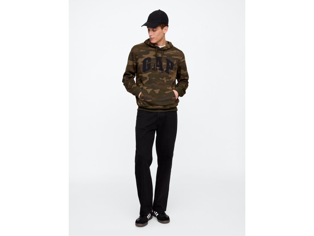 Pánska mikina s maskáčovou potlačou a logom Gap spája ležérny štýl a celodenné pohodlie. Vyrobená z mäkkého a hrejivého fleecu, ktorý je príjemný na dotyk a ideálny na každodenné nosenie. Uvoľnený rovný strih so spadnutými ramenami zaisťuje voľnosť pohybu, kapucňa so sťahovacími šnúrkami a priestranné vrecko pridávajú na praktickosti. Dlhé rukávy a spodný lem sú zakončené rebrovanými manžetami, ktoré dobre držia tvar. Výrazná maskáčová potlač a ikonické logo Gap na hrudi podčiarkujú moderný mestský vzhľad. Dĺžka siaha pod bokmi. Skvelá voľba pre pohodlný každodenný štýl.Dodatočné parametre