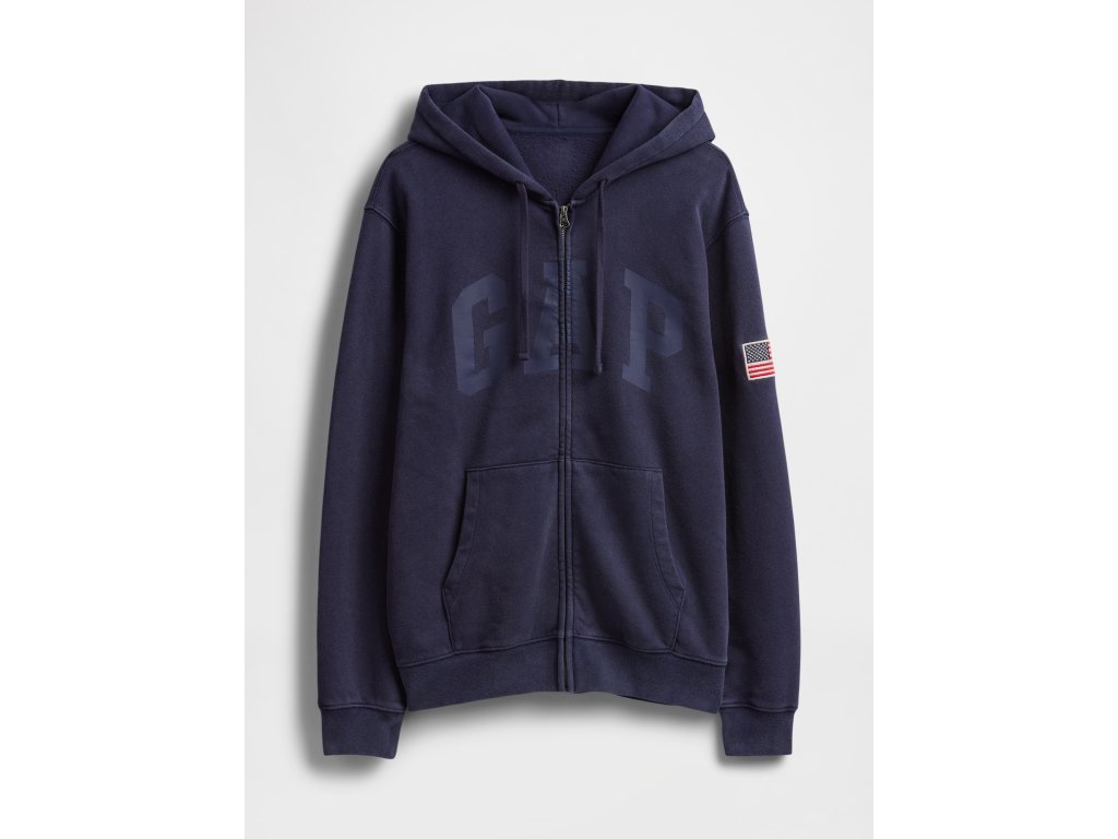 Pánska fleecová mikina na zips s kapucňou spája mäkkosť, ležérny štýl a ohľaduplnosť k prírode - vyrobená z bavlnenej zmesi s 23% recyklovaného polyesteru a 27% bavlny overenej programom U.S. Cotton Trust Protocol, ktorý podporuje šetrnejšie poľnohospodárstvo s dôrazom na úsporu vody a starostlivosť o pôdu. Vnútorný česaný fleece je mimoriadne hebký na dotyk, zatiaľ čo hladký vonkajší povrch zaisťuje čistý vzhľad pre každodenné nosenie. Mikina má kapucňu so sťahovacími šnúrkami, zips po celej dĺžke, dlhé rukávy s pružnými manžetami a dve vrecká na nevyhnutnosti. Štýl dotvára ikonické logo Gap na hrudi a nášivka Americana na rukáve. Rovný a uvoľnený strih (relaxed fit) poskytuje pohodlie bez obmedzenia, dĺžka siaha ku bedrám – ideálna na kombináciu s tričkom alebo vrstvenie pod bundu. Mikina bola vyrobená v továrni zapojenej do programov RISE a P.A.C.E., ktoré podporujú rovnosť žien a mužov a rozvoj zamestnancov v módnom priemysle. Modelové meria 185–188 cm, majú pás 79 cm, vnútornú dĺžku nohavíc 81–84 cm a nosia veľkosť M. Ak preferujete užší strih, odporúčame zvoliť o veľkosť menšiu.Dodatočné parametre