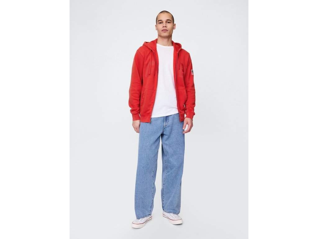 Pánska fleecová mikina na zips s kapucňou spája mäkkosť, ležérny štýl a ohľaduplnosť k prírode - vyrobená z bavlnenej zmesi s 23% recyklovaného polyesteru a 27% bavlny overenej programom U.S. Cotton Trust Protocol, ktorý podporuje šetrnejšie poľnohospodárstvo s dôrazom na úsporu vody a starostlivosť o pôdu. Vnútorný česaný fleece je mimoriadne hebký na dotyk, zatiaľ čo hladký vonkajší povrch zaisťuje čistý vzhľad pre každodenné nosenie. Mikina má kapucňu so sťahovacími šnúrkami, zips po celej dĺžke, dlhé rukávy s pružnými manžetami a dve vrecká na nevyhnutnosti. Štýl dotvára ikonické logo Gap na hrudi a nášivka Americana na rukáve. Rovný a uvoľnený strih (relaxed fit) poskytuje pohodlie bez obmedzenia, dĺžka siaha ku bedrám – ideálna na kombináciu s tričkom alebo vrstvenie pod bundu. Mikina bola vyrobená v továrni zapojenej do programov RISE a P.A.C.E., ktoré podporujú rovnosť žien a mužov a rozvoj zamestnancov v módnom priemysle. Modelové meria 185–188 cm, majú pás 79 cm, vnútornú dĺžku nohavíc 81–84 cm a nosia veľkosť M. Ak preferujete užší strih, odporúčame zvoliť o veľkosť menšiu.Dodatočné parametre