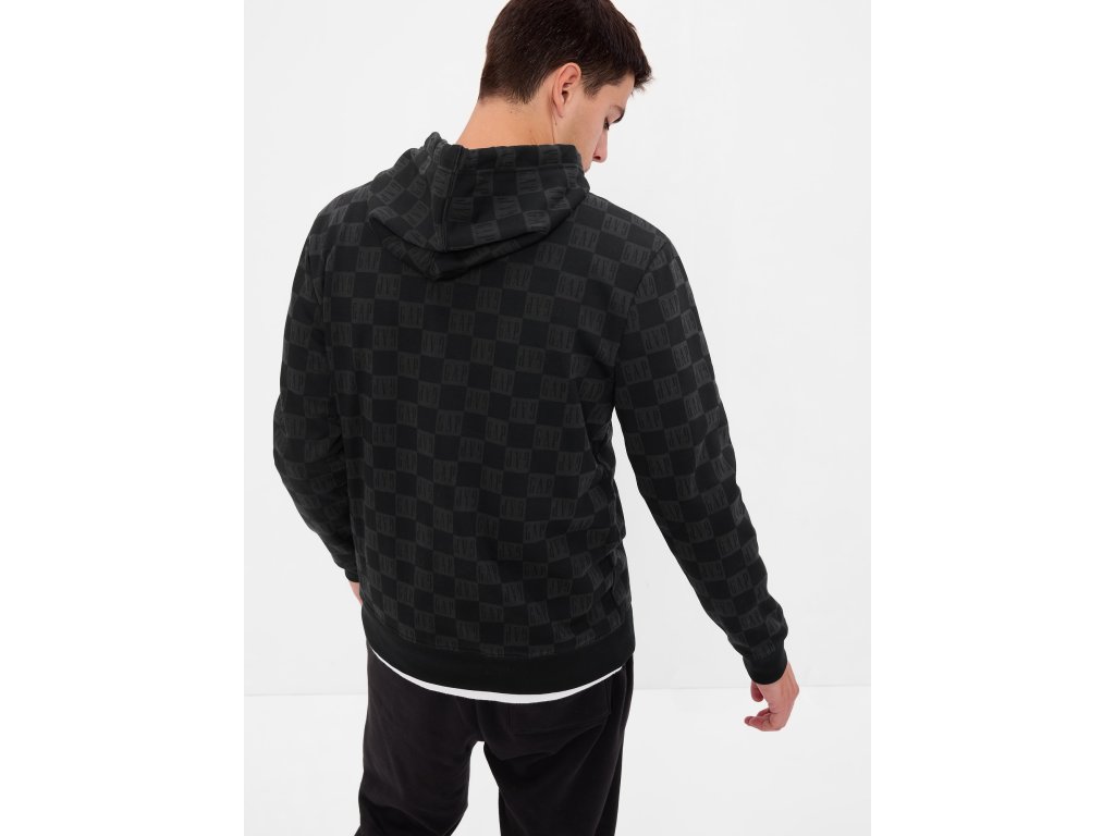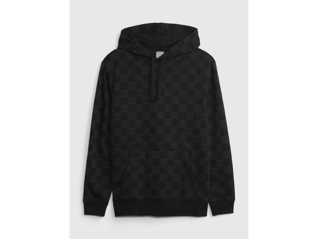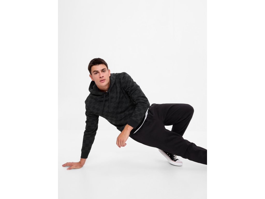 Pánska mikina s kapucňou. Plošný vzor šachovnice. Strih cez hlavu. Priestranné klokanie vrecko. Kapucňa so sťahovacou šnúrkou. 23% recyklovaný polyester.Dodatočné parametre