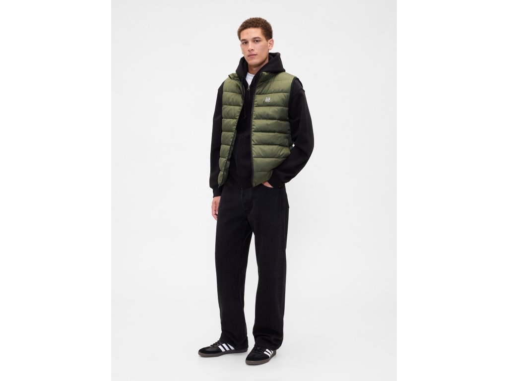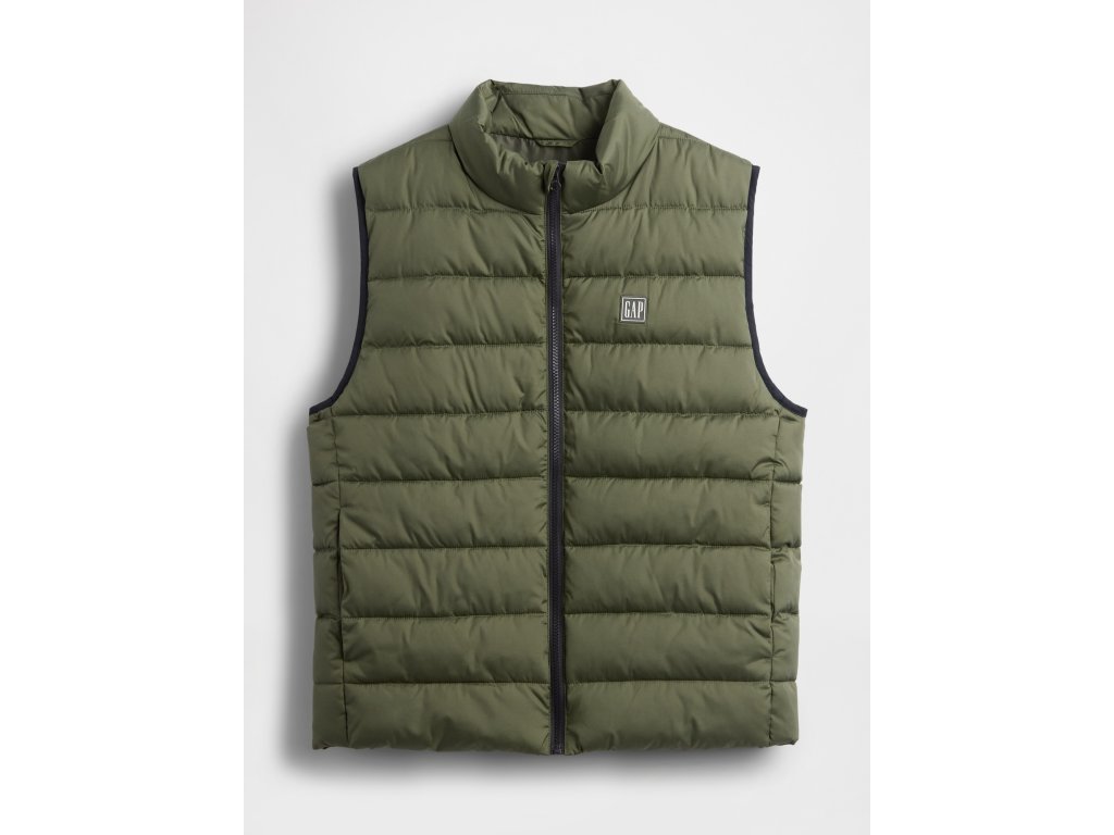 Pánska prešívaná vesta je ľahká, hrejivá a praktická vrstva pre chladnejšie dni. Vyrobená z vodoodpudivého prešívaného materiálu s výplňou zo 100% recyklovaného vlákna Wellon, ktoré výborne izoluje a pritom je šetrné k prírode. Wellon je syntetické výplňové vlákno s podobnými vlastnosťami ako perie – hrejivé, ľahké a nadýchané. Strih bez rukávov zaisťuje voľnosť pohybu, stojačik chráni krk a zapínanie na zips umožňuje ľahké obliekanie. Na hrudi nájdete decentné logo Gap, šikmé vrecká po stranách poslúžia na zahriatie rúk aj uloženie drobností. Rovný, ležérny strih siaha pod bokmi a skvele sa hodí cez mikinu, sveter alebo ľahkú bundu. Ideálny kúsok na vrstvenie, ktorý kombinuje funkčnosť a štýl.Dodatočné parametre
