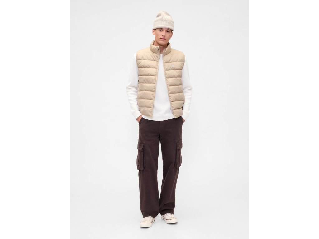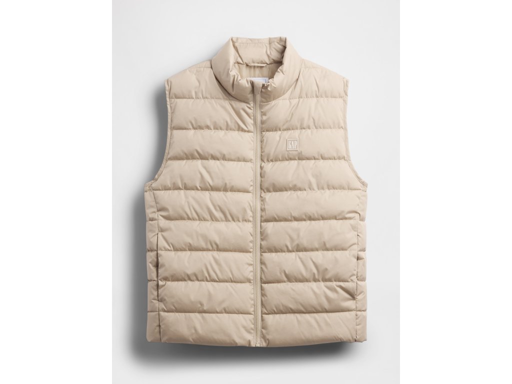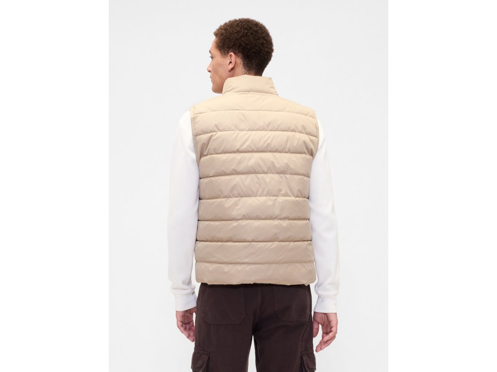 Pánska prešívaná vesta je ľahká, hrejivá a praktická vrstva pre chladnejšie dni. Vyrobená z vodoodpudivého prešívaného materiálu s výplňou zo 100% recyklovaného vlákna Wellon, ktoré výborne izoluje a pritom je šetrné k prírode. Wellon je syntetické výplňové vlákno s podobnými vlastnosťami ako perie – hrejivé, ľahké a nadýchané. Strih bez rukávov zaisťuje voľnosť pohybu, stojačik chráni krk a zapínanie na zips umožňuje ľahké obliekanie. Na hrudi nájdete decentné logo Gap, šikmé vrecká po stranách poslúžia na zahriatie rúk aj uloženie drobností. Rovný, ležérny strih siaha pod bokmi a skvele sa hodí cez mikinu, sveter alebo ľahkú bundu. Ideálny kúsok na vrstvenie, ktorý kombinuje funkčnosť a štýl.Dodatočné parametre