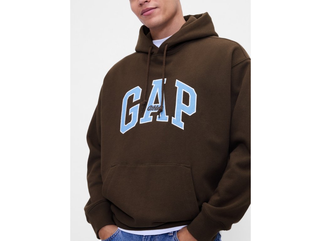 Pánska mikina s kapucňou Gap Athletic v oversize strihu dodá každému outfitu športový a moderný nádych. Mäkký, silnejší bavlnený fleece príjemne zahreje v chladnejšom počasí. Kapucňa so sťahovacími šnúrkami umožní individuálne nastavenie, zatiaľ čo dlhé rukávy s rebrovanými manžetami a spodným lemom dobre držia tvar. Veľké logo Gap Athletic podčiarkuje výrazný vzhľad. Vrecko na prednej strane pojme všetko potrebné. Materiál obsahuje 14% recyklovaného polyesteru, ktorý šetrí prírodné zdroje. Mikina je súčasťou iniciatívy RISE podporujúce rovnosť a rozvoj žien vo výrobe. Oversize strih je voľný po celom obvode a siaha ku bedrám. Model meria 185–188 cm, má pás 79 cm a nosí veľkosť M.Dodatočné parametre