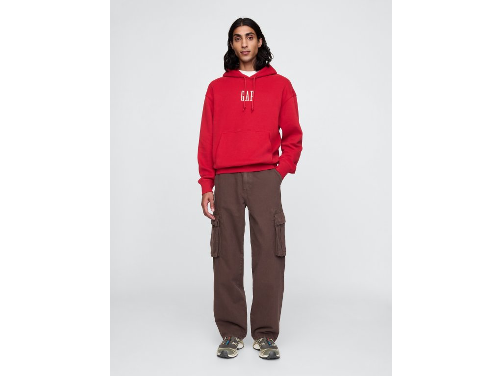 Pohodlná mikina z bavlnenej fleece zmesi s kapucňou a nastaviteľnými šnúrkami. Dlhé rukávy zakončené rebrovanými manžetami. Praktické vrecko na prednej strane. Logo Gap dodáva mikine štýlový vzhľad. Rebrovaný spodný lem zaisťuje pohodlie a tvar. 27 % bavlny v tejto mikine pochádza z programu U.S. Cotton Trust Protocol, ktorý podporuje farmy znižujúce spotrebu vody a zlepšujúce rozmanitosť pôdy. Mikina je farbená špeciálnou technikou pre neuveriteľnú jemnosť, vďaka ktorej sa stane vašim obľúbeným kúskom od prvého obliekania. Strih: Oversize, voľný na tele. Modelové meria 185–188 cm, majú pás 79 cm a vnútornú dĺžku nohavíc 81–84 cm; nosí veľkosť M. Pre užší strih odporúčame zvoliť o jednu až dve veľkosti menšie.Dodatočné parametre