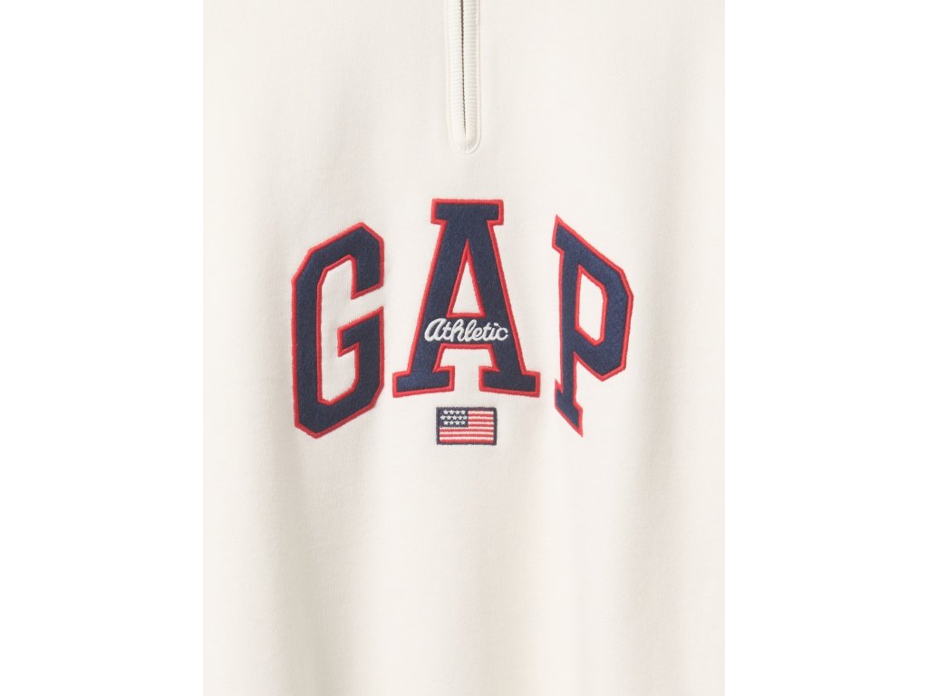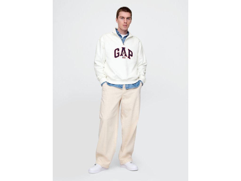 Doprajte si pohodlie a štýl s touto mäkkou mikinou z bavlnenej zmesi. Mikina má moderný stojačik s polovičným zipsom, ktorý umožňuje prispôsobiť si vzhľad a pohodlie podľa potreby. Dlhé rukávy. Pružný lem na spodnom okraji. Na prednej strane sa nachádza ikonické logo Gap. táto mikina je vyrobená zo 14 % recyklovaného polyesteru, čo pomáha znižovať spotrebu zdrojov a produkciu odpadu, čím prispieva k udržateľnosti. Strih je oversize, takže mikina voľne sedí na tele, pre klasický vzhľad odporúčame zvoliť o jednu až dve veľkosti menšie. Mikina končí pri bokoch, čo zaisťuje pohodlné a štýlové nosenie, ideálne pre vrstvenie.Dodatočné parametre