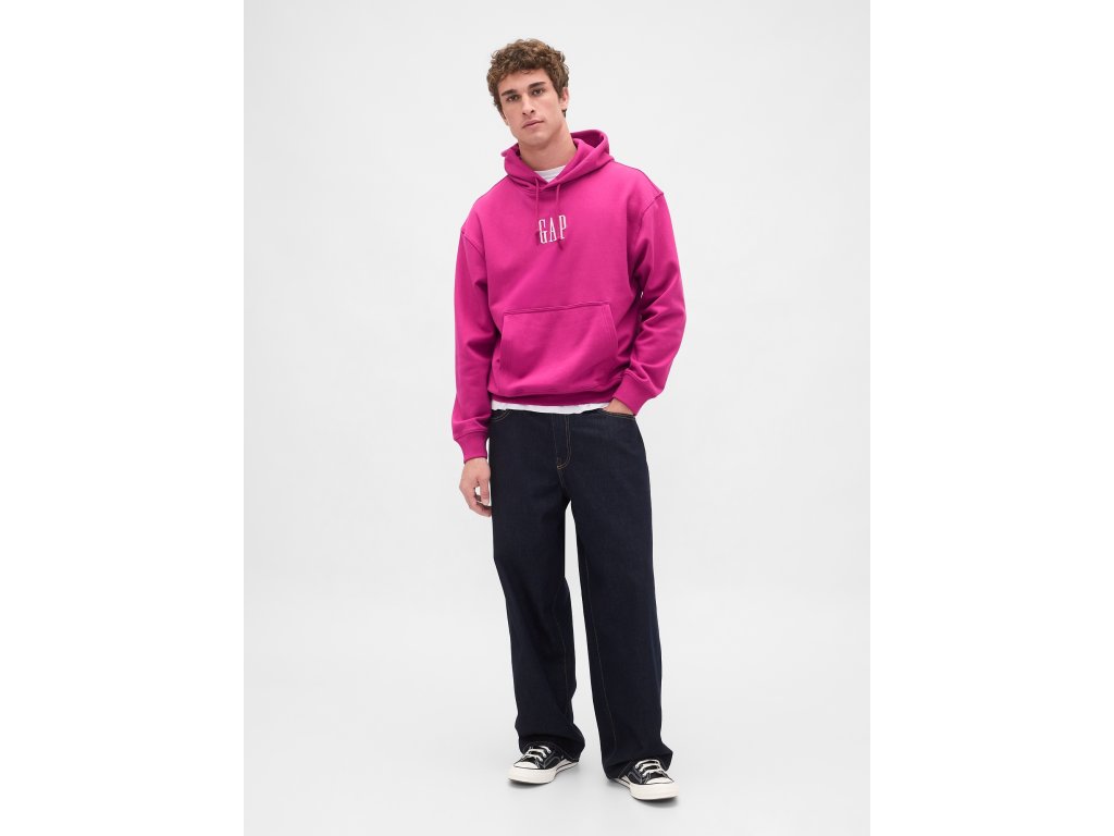 Pánska mikina z ťažšieho bavlneného fleecu ponúka mäkký a hrejivý pocit, takže je ideálna pre chladnejšie dni aj pohodové chvíle doma. Kapucňa s nastaviteľnými šnúrkami poskytuje extra komfort a ochranu, zatiaľ čo vrecko na prednej strane je praktické aj štýlové. Dlhé rukávy so spadnutými ramenami a rebrovanými manžetami spolu s rebrovaným spodným lemom zaisťujú pohodlné nosenie a udržujú tvar. Na hrudi nechýba ikonické logo Gap. Mikina je vyrobená s podielom 14% recyklovaného polyesteru, ktorý šetrí životné prostredie. Tento model pochádza z továrne zapojenej do programu RISE, ktorý podporuje rodovú rovnosť a posilnenie postavenia žien. Oversize strih je voľný. Dĺžka siaha k bokom. Modelové s výškou 185–188 cm, pásom 79 cm a vnútornou dĺžkou nohavíc 81–84 cm majú na sebe veľkosť M. Pokiaľ preferujete užší strih, odporúčame zvoliť o jednu až dve veľkosti menšie.Dodatočné parametre