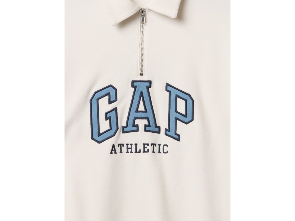 Mäkká polo mikina s golierom je vyrobená z froté s prímesou bavlny a 23% recyklovaného polyesteru, čo prispieva k znižovaniu plytvania zdrojmi. Vďaka zapínaniu na štvrtinový zips, voľnému strihu a uvoľneným rukávom ponúka maximálne pohodlie a je ideálny na každodenné nosenie. Zakončenie rukávov a spodného lemu spolu s logom Gap Athletic na prednej strane dodávajú mikine moderný a štýlový vzhľad. Mikina siaha do oblasti bokov, čo z nej robí skvelú voľbu pre kombináciu s akýmkoľvek outfitom – športovým aj ležérnym. Pokiaľ preferujete užší strih, odporúčame zvoliť o jednu veľkosť menšiu. Modelové meria 185–188 cm, majú pás 79 cm, dĺžku nohavíc 81–84 cm a obliekajú veľkosť M.Dodatočné parametre