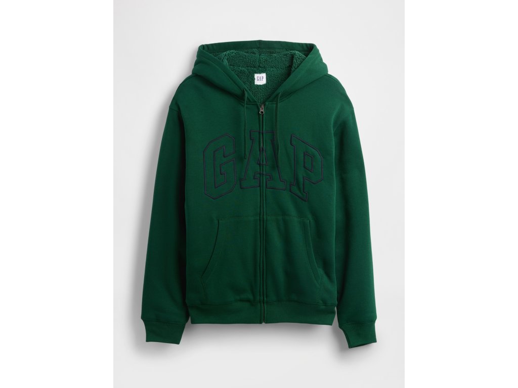 Pánska mikina s hrejivou sherpa podšívkou je ideálnou voľbou pre chladnejšie dni. Vyrobená z mäkkého fleecu, ktorý je na dotyk príjemný a pohodlný pri nosení. Vnútri má celoplošnú podšívku zo sherpy pre maximálne teplo. Mikina má kapucňu so sťahovacími šnúrkami, zapínanie na zips, spadnuté ramená a dlhé rukávy s rebrovanými manžetami. Vrecká vpredu a logo Gap na hrudi dotvárajú klasický vzhľad. Rovný, voľnejší strih siaha pod bokmi – ideálny na vrstvenie aj samostatné nosenie.Dodatočné parametre