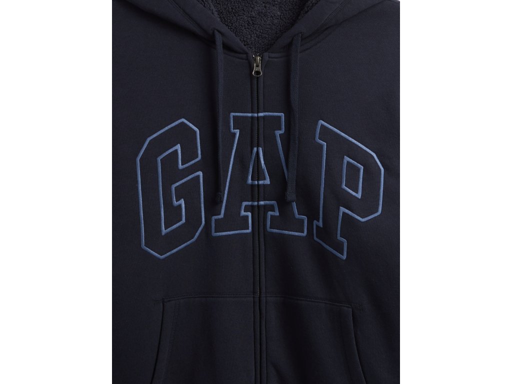 Pánska mikina s hrejivou sherpa podšívkou je ideálnou voľbou pre chladnejšie dni. Vyrobená z mäkkého fleecu, ktorý je na dotyk príjemný a pohodlný pri nosení. Vnútri má celoplošnú podšívku zo sherpy pre maximálne teplo. Mikina má kapucňu so sťahovacími šnúrkami, zapínanie na zips, spadnuté ramená a dlhé rukávy s rebrovanými manžetami. Vrecká vpredu a logo Gap na hrudi dotvárajú klasický vzhľad. Rovný, voľnejší strih siaha pod bokmi – ideálny na vrstvenie aj samostatné nosenie.Dodatočné parametre