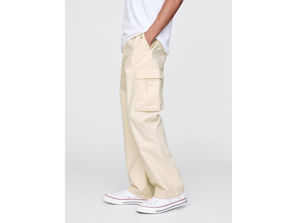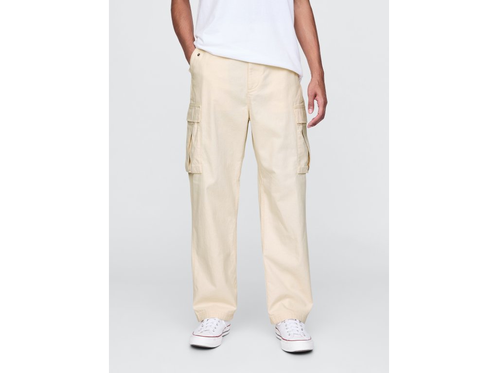 Pohodlné cargo nohavice z mäkkej bavlny. Klasické zapínanie na gombík a zips. Predné a zadné vrecká s chlopňami na patentky. Praktické bočné cargo vrecká pre extra úložný priestor. Nohavice majú klasický strih - dobre padnú v páse a sú voľnejšie cez boky a stehná pre pohodlné nosenie. Ideálne pre každodenný štýl aj voľný čas. Modelové na fotografiách merajú 185–188 cm, majú obvod pása 79 cm, dĺžku nohavíc 81–84 cm a nosia veľkosť M.Dodatočné parametre
