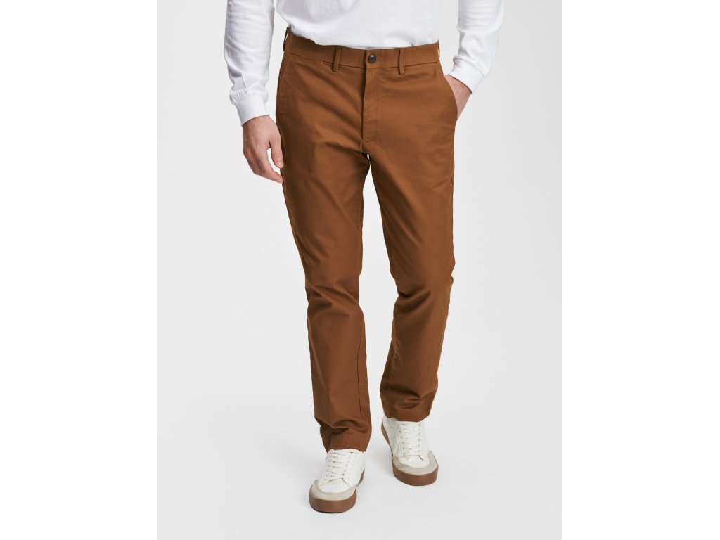 Pánske nohavice khakis. Pohodlný slim strih. Klasické zapínanie na zips a gombík. Pevný pás a pútka na opasok. Predné a zadné vrecká. Bavlnené s elastanom.Dodatočné parametre
