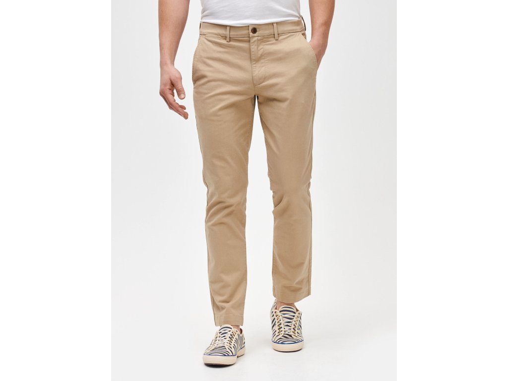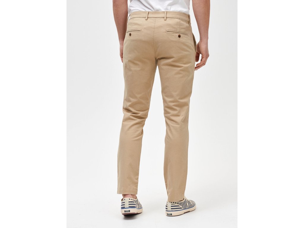Pánske bavlnené khaki nohavice. Strih slim fit. So stredne vysokým pásom. So zapínaním na zips a gombík. Pevný pás s pútkami na opasok. Predné šikmé vrecká. Zadné zapustené vrecká.Dodatočné parametre