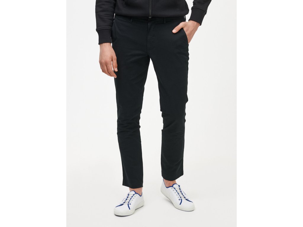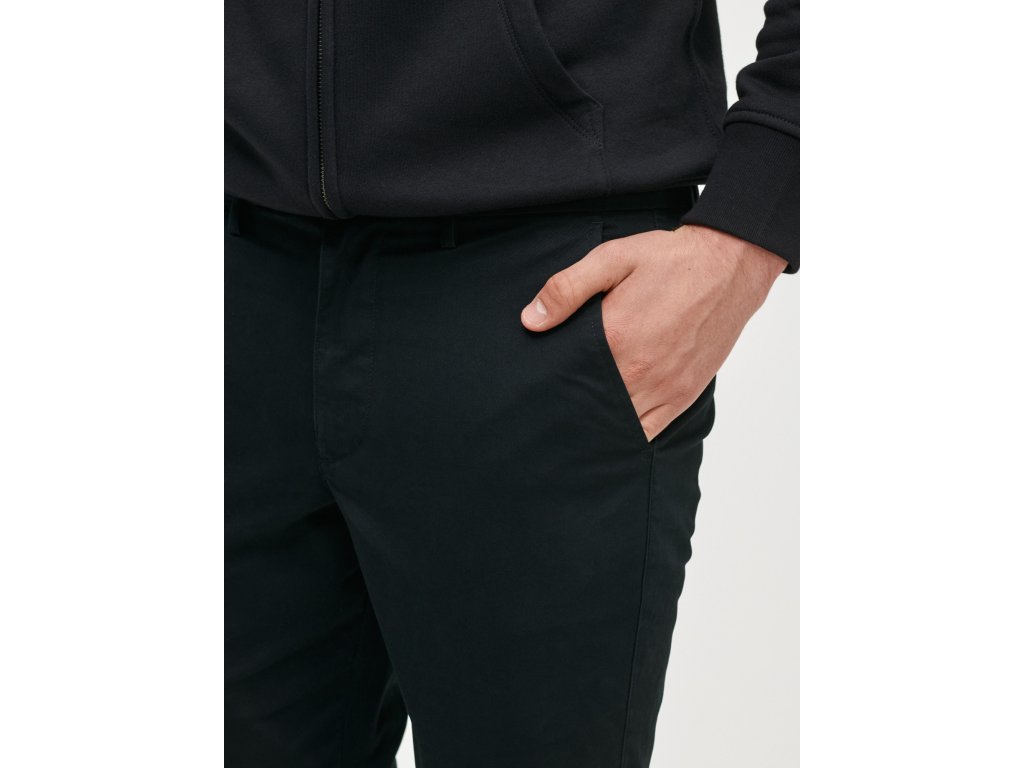 Pánske bavlnené khaki nohavice. Strih slim fit. So stredne vysokým pásom. So zapínaním na zips a gombík. Pevný pás s pútkami na opasok. Predné šikmé vrecká. Zadné zapustené vrecká.Dodatočné parametre