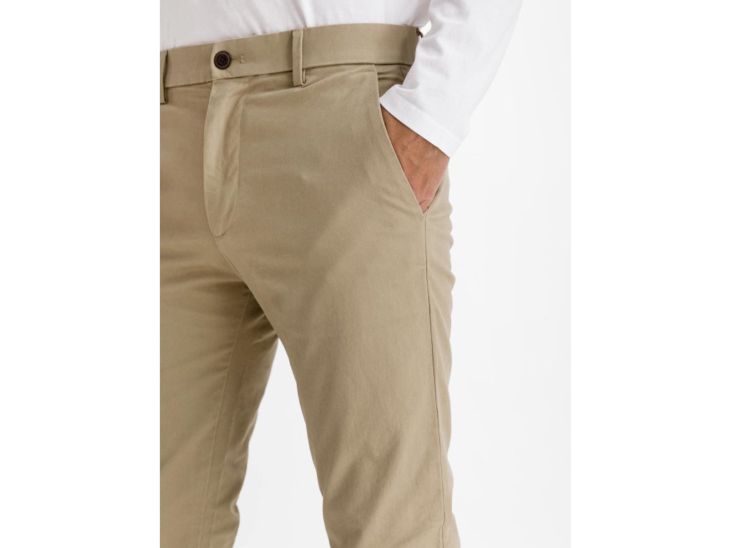 Pánske moderné khaki nohavice. Úzky skinny strih. Stredne vysoký pás. Zapínanie na zips a gombík. Pútka na opasok. Predné šikmé vrecká. Pružné.Dodatočné parametre