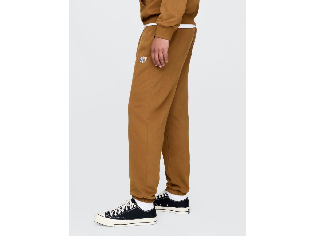 Tepláky z mäkkej zmesi bavlny a fleecu majú elastický pás, bočné vrecká a zadné našité vrecko. Na stehne ich zdobí logo Gap, zatiaľ čo elastické manžety na nohaviciach zaisťujú pohodlné nosenie. Vyrobené s 23% recyklovaného polyesteru, čo prispieva k znižovaniu spotreby zdrojov a odpadu. Tieto tepláky ponúkajú klasický strih, ktorý pohodlne padne v páse a je voľný cez boky a stehná. Modelové meria 185–188 cm, majú obvod pása 79 cm a dĺžku vnútorného švu 81–84 cm a na sebe veľkosť M.Dodatočné parametre