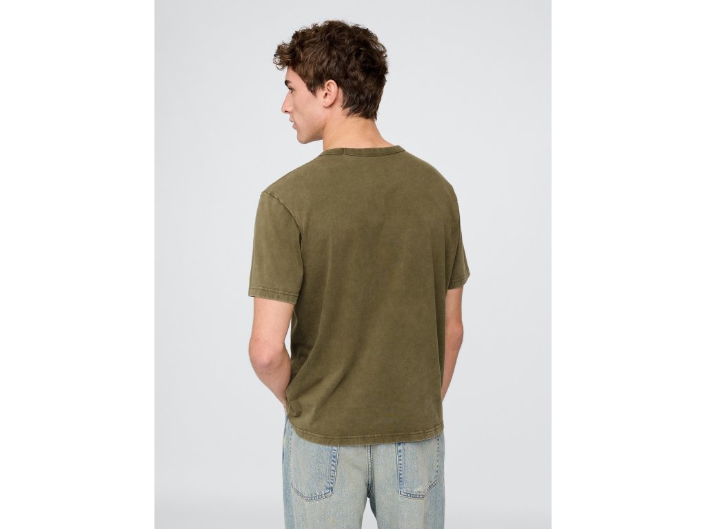 Voľne strihané tričko z priedušnej a mäkkej bavlny. Klasický okrúhly výstrih. Krátke rukávy. Tričko je špeciálne farbené tak, aby si uchovávalo sýte a výrazné farby. Voľný strih cez hrudník, ramená a pás. Modelové meria 185–188 cm, majú pás 79 cm a dĺžku nohavíc 81–84 cm. Na sebe majú veľkosť M.Dodatočné parametre