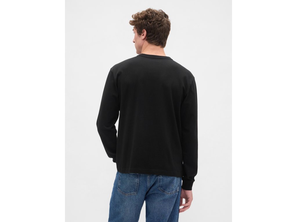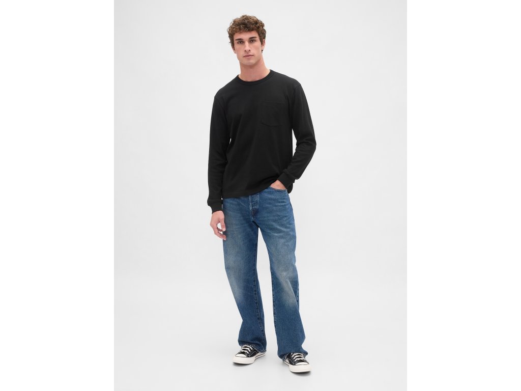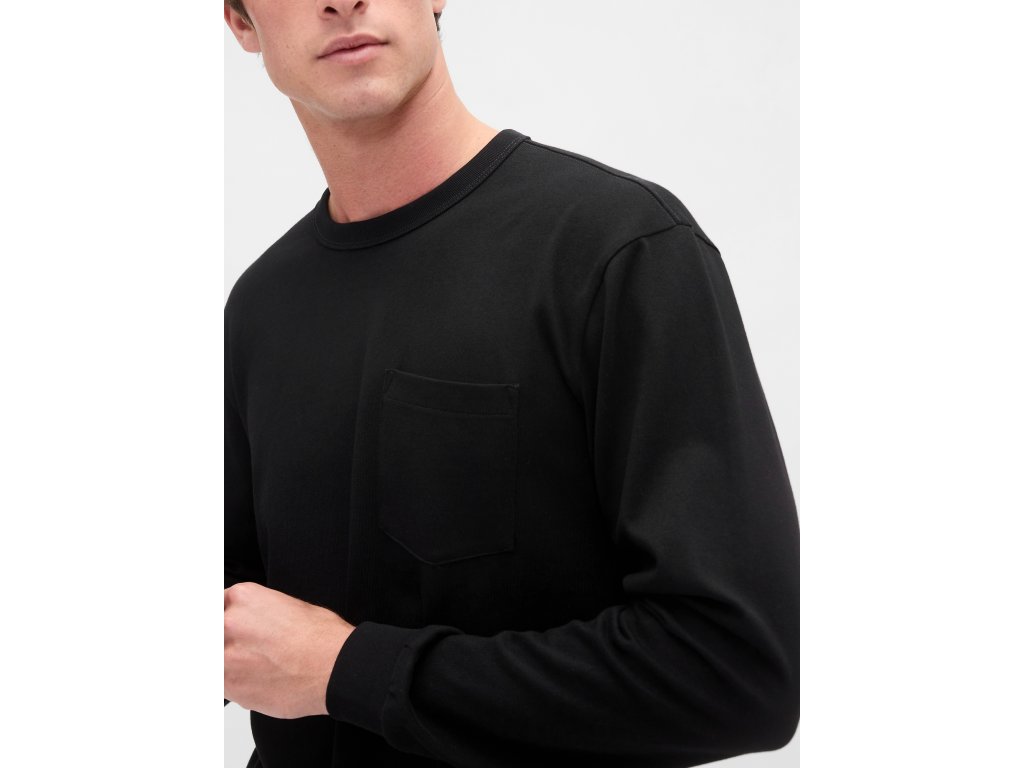 Pánske tričko z mäkkého, ale ťažšieho bavlneného džerseja kombinuje pohodlie ideálne pre každý deň. Má klasický okrúhly výstrih, dlhé rukávy s pružnými manžetami a praktické našité vrecko na hrudi. Rovný, voľnejší strih siaha ku bedrám. Vyrobené v továrni zapojenej do iniciatívy RISE, ktorá podporuje rodovú rovnosť a posilňuje postavenie žien. Modelové meria 185–188 cm, majú pás 79 cm a dĺžku vnútorného švu 81–84 cm. Na sebe majú veľkosť Gap M. Pokiaľ preferujete užší strih, odporúčame zvoliť o jednu veľkosť menšiu.Dodatočné parametre
