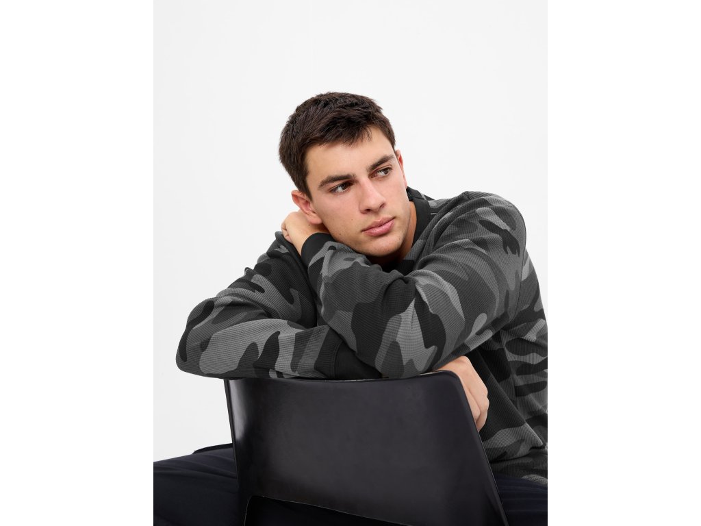 Pánske tričko s army vzorom. Dlhé rukávy s nápletmi. Okrúhly výstrih ku krku. Mäkký úplet s vaflovou štruktúrou. Rovný strih. Materiál: 60% cotton, 40% polyesterDodatočné parametre