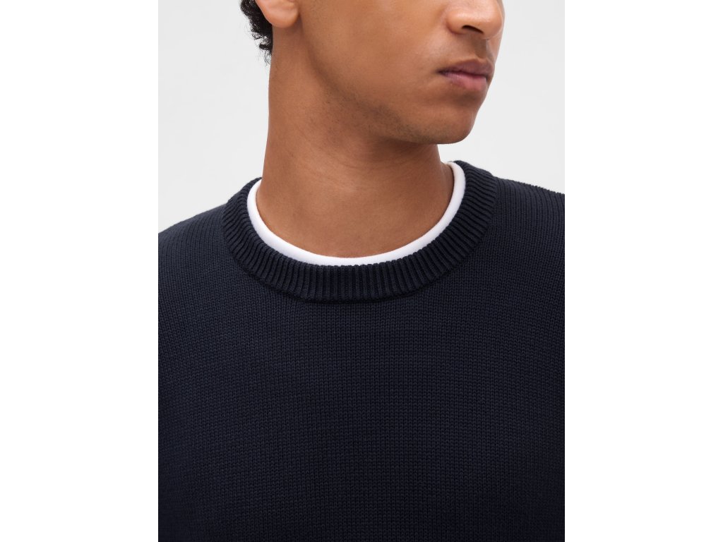 Pánsky sveter zo 100% bavlny je mäkký, pohodlný a ideálny na každodenné nosenie. Klasický okrúhly výstrih a dlhé rukávy s rebrovanými manžetami podčiarkujú jeho nadčasový vzhľad. Rebrovaný spodný lem udržuje tva. Classic fit strih je rovný a pohodlný, skvele sa hodí ako na vrstvenie, tak aj na samostatné nosenie. Dĺžka siaha do úrovne bokov. Sveter sa ľahko kombinuje s džínsami aj nohavicami pre ležérny, ale stále uhladený outfit. Modelové meria 185–188 cm, majú pás 79 cm, vnútornú dĺžku švu 81–84 cm a nosia veľkosť M.Dodatočné parametre