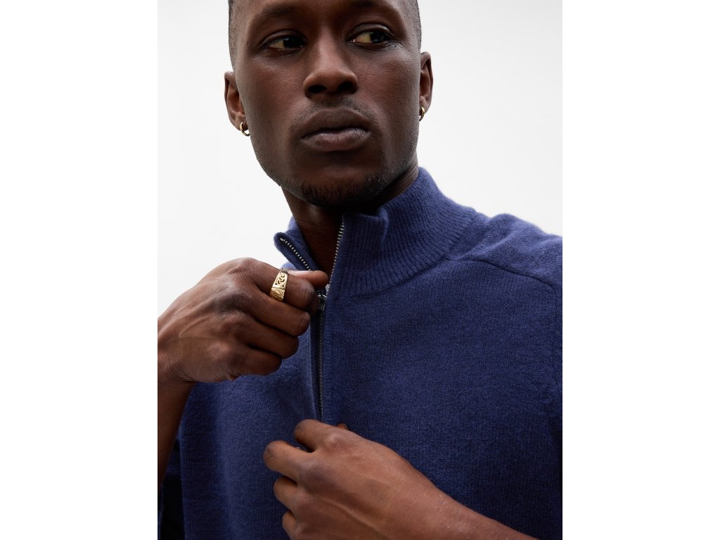 Pánsky sveter. Pri krku golier so zapínaním na zips. Dlhé rukávy s pružným nápletom. Jednofarebný.CashSoft je ľahký, hebký, mäkký ako kašmír. Luxusný, ale nenáročný na údržbu.