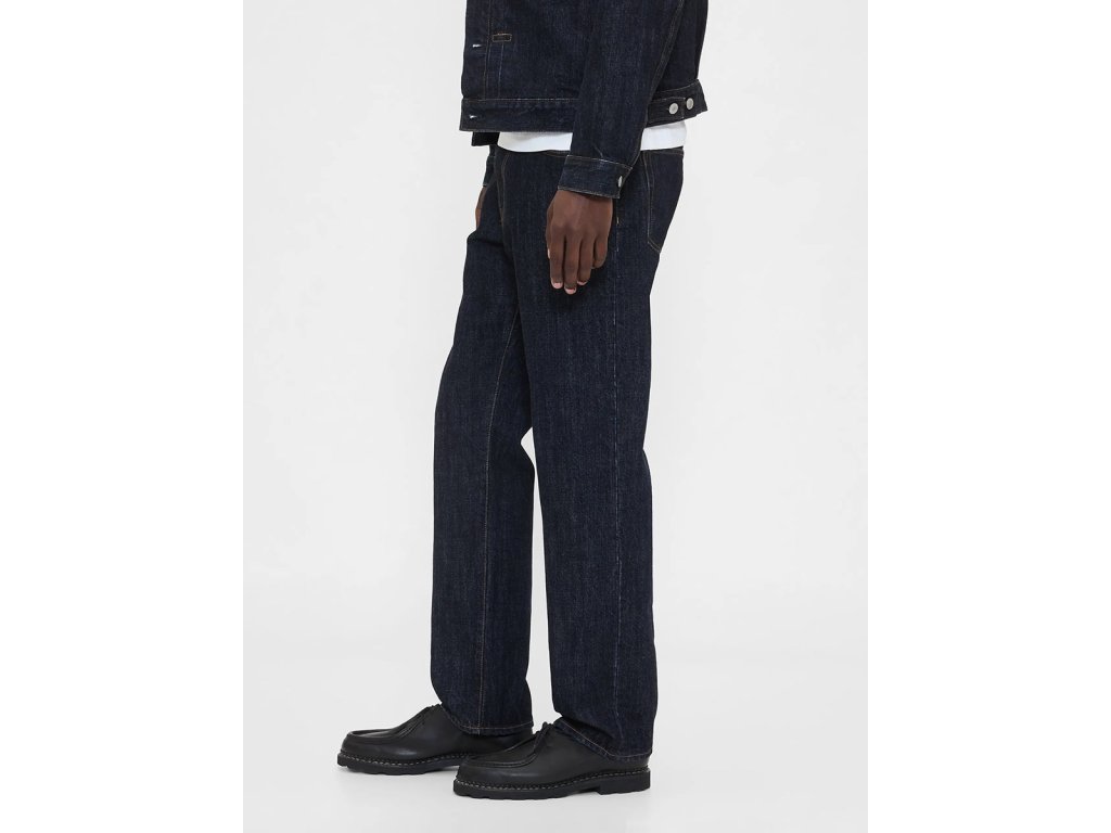 Naše džínsy sú ušité z materiálu, ktorý sa nosením prispôsobí vašej postave a získa jedinečný vzhľad. Tento **pevný denim** bez streče je ideálny pre tých, ktorí hľadajú trvanlivosť a kvalitu. Tmavý odtieň a dizajn s piatimi vreckami dodávajú džínsom jednoduchý a univerzálny štýl, ktorý sa hodí ku všetkému.