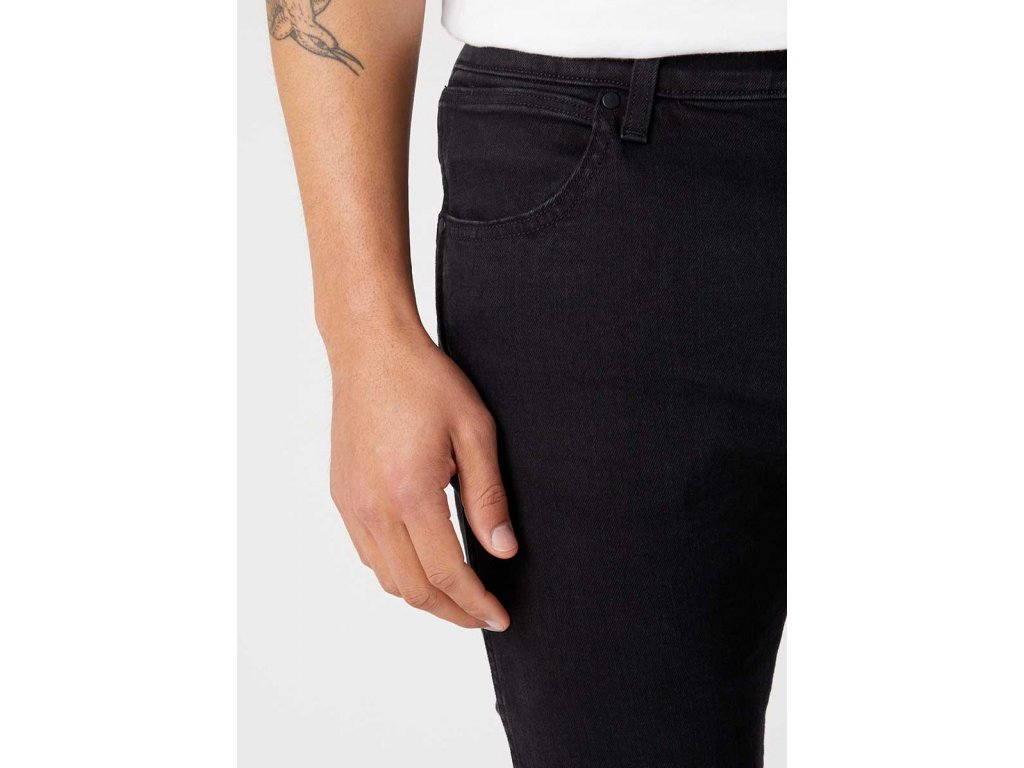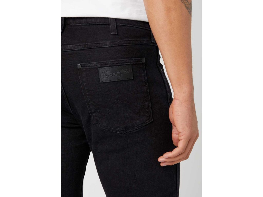 Tieto strečové jeansy sú vyrobené z veľmi kvalitného denimu s vyššou gramážou a ľahkou prímesou elastanu, ktorý zaisťuje vysokú dávku pohodlia pri nosení. Zadné vrecká sú prešité dvojitým stehom čiernej farby v tvare W. Na pravom zadnom vrecku je, ako je pre značku WRANGLER typické, kožená nášivka s logom značky.